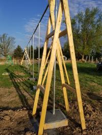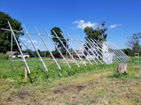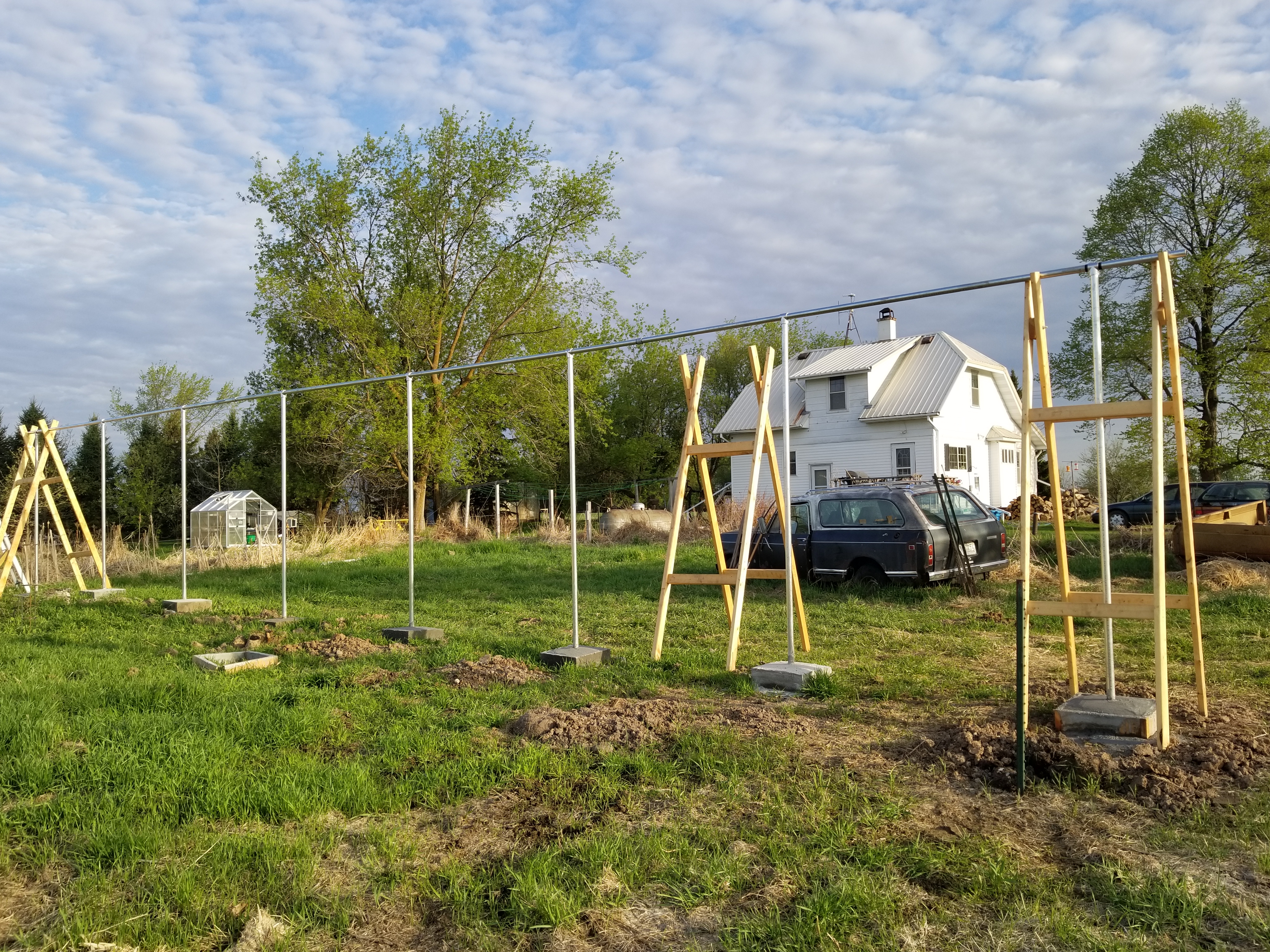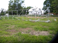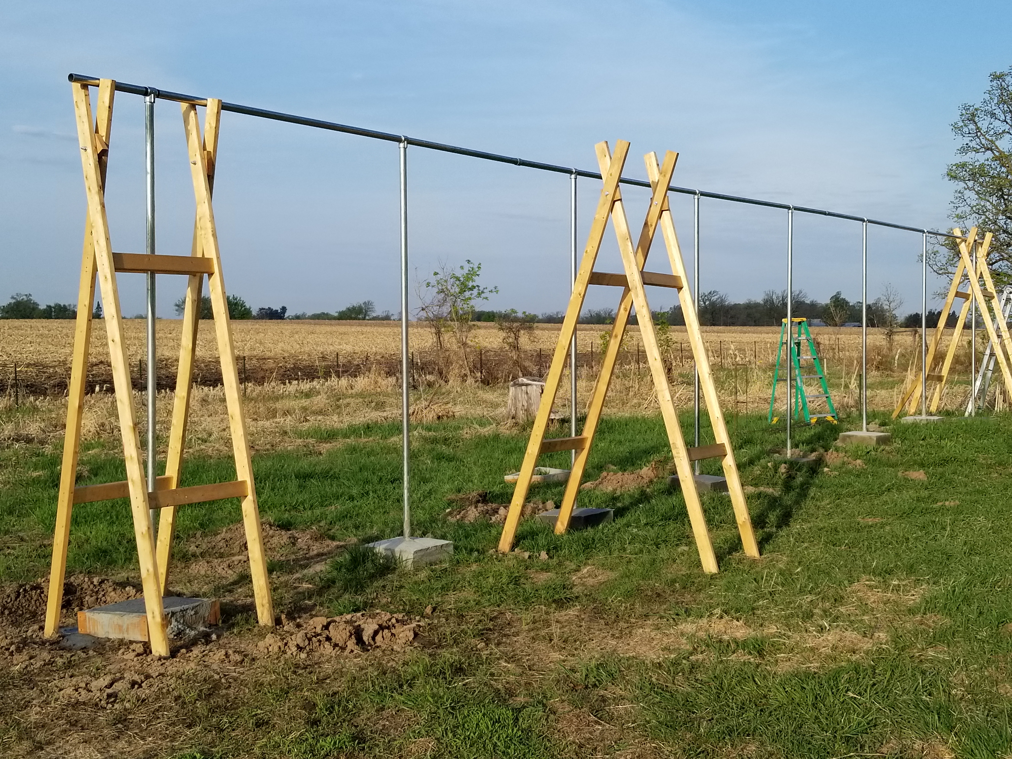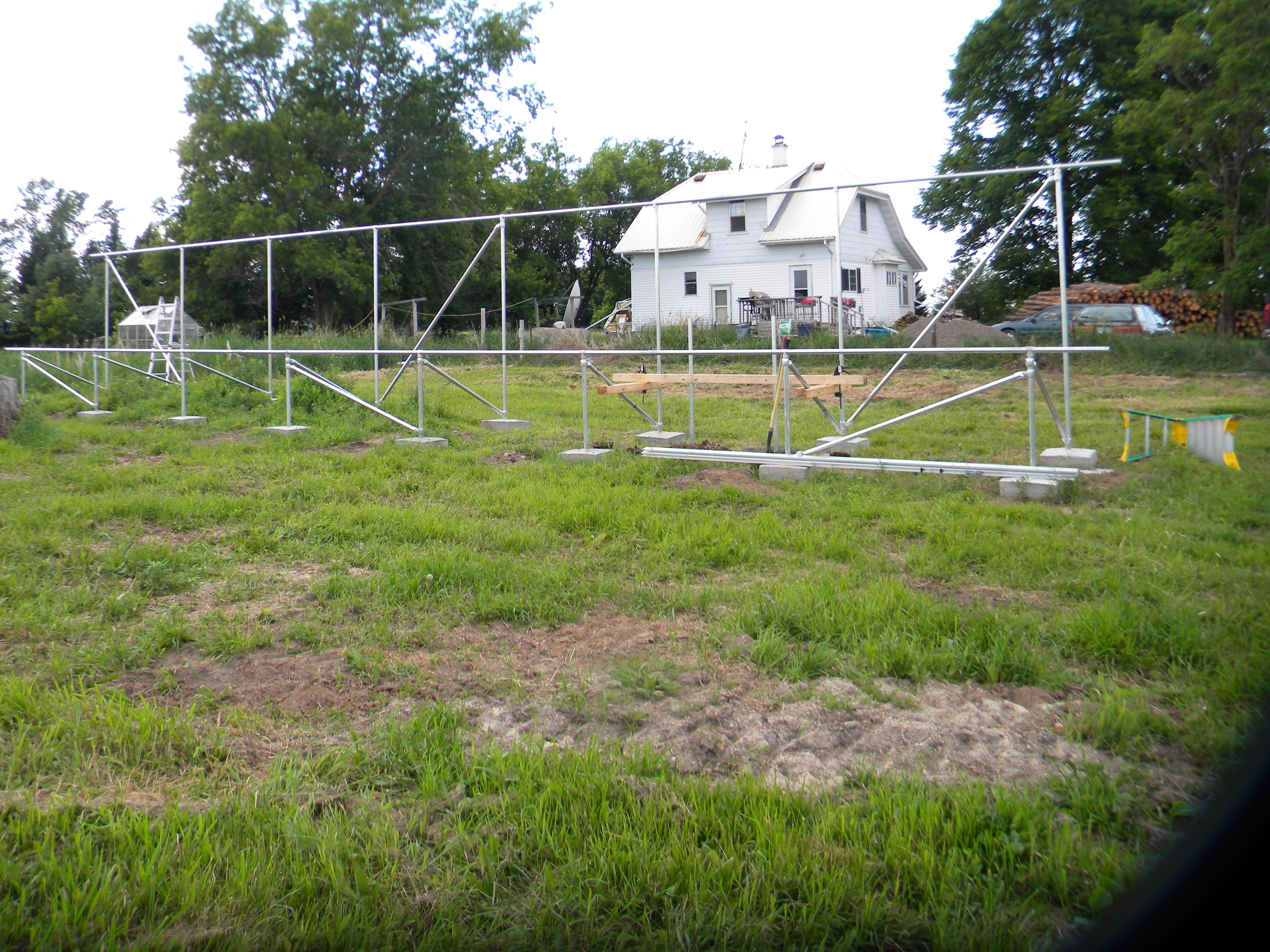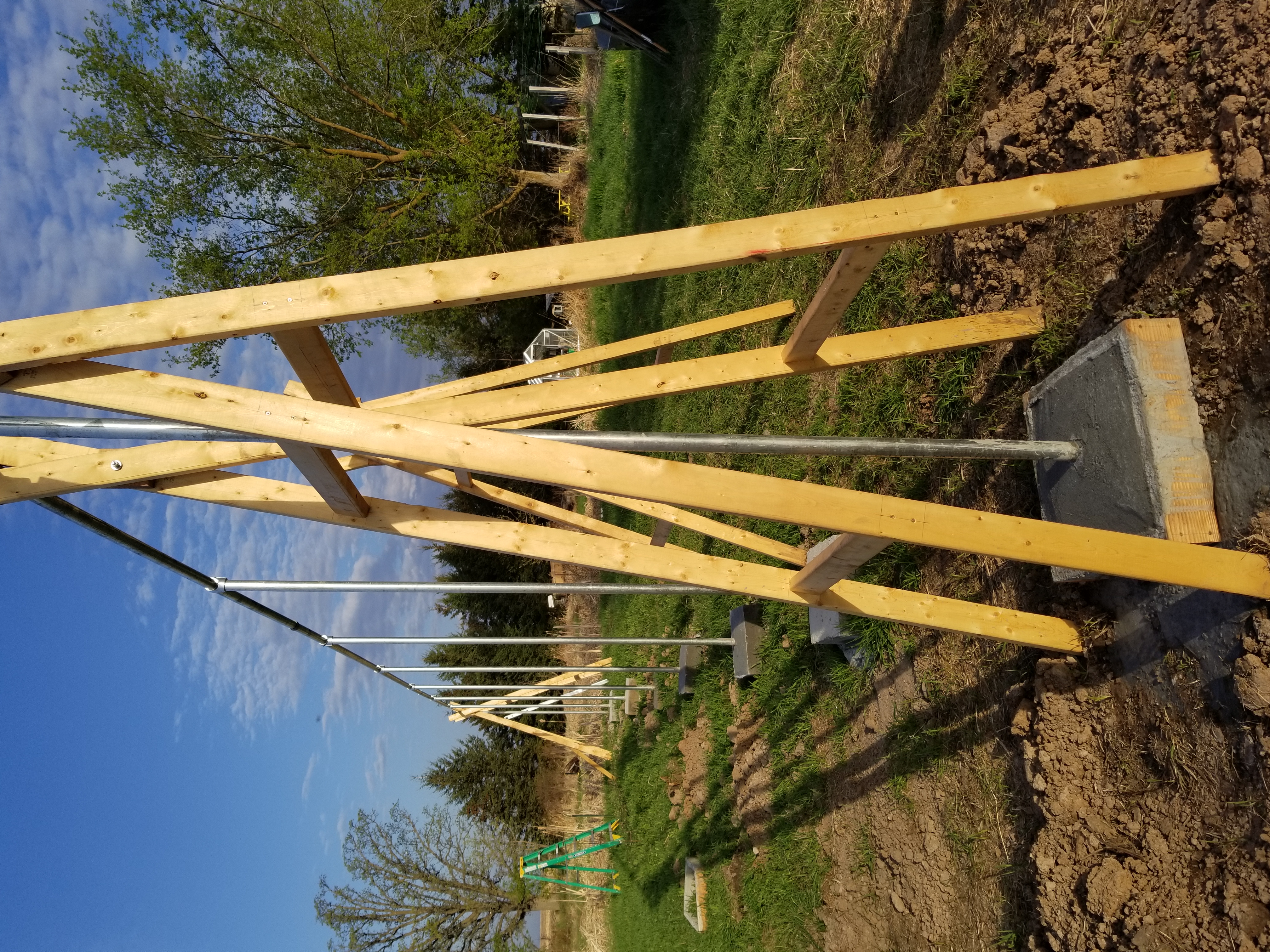 We used one of the 21ft pipes for the Horizontal run to suspend the vertical piers with the SnapNrack "tee" fittings, and the "X" support frame.