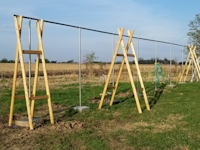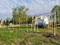 Anyone with some basic knowledge of geometry could probably whip these numbers out with a calculator. Anyway, armed with some layout measurements, and a tape measure, my wife and I went out and put some stakes in the ground just as soon as the ground was soft enough to drive a stake into.